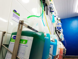 No Steffen Lab possuímos diversos sistemas de diluição, instalados para demonstração de planos de higiene de empresas de diversos segmentos, além de variados pisos e superfícies instalados para treinamento nos processos profissionais de higienização.